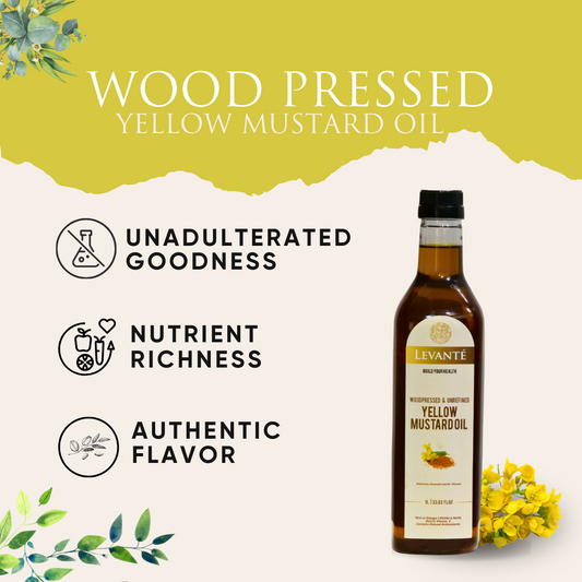 Levanté Wood Pressed Yellow Mustard Oil4.57 / 5.0 (14) 14 total reviews Regular price From Rs. 275.00Regular priceUnit price / perRs. 325.00Sale price From Rs. 275.00Sale