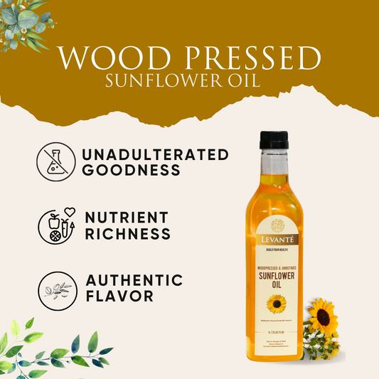 Levanté Wood Pressed Sunflower Oil4.67 / 5.0 (15) 15 total reviews Regular price From Rs. 225.00Regular priceUnit price / perRs. 240.00Sale price From Rs. 225.00Sale